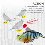 What makes this vibration bait special is the attention to detail in its design. The fixed weight, combined with its 3D eyes and laser fish skin, ensures that it mimics the look and movement of real fish. Whether you're fishing for bass, trout, or other species, this lure's enhanced reflective quality and lifelike design increase your chances of a successful catch. The high-quality treble hooks provide a secure grip, while the enhanced rings and strong construction guarantee durability through many fishing trips.