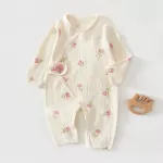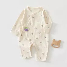 Thanks to the lightweight cotton and spandex blend, this romper is breathable enough to keep your baby comfortable during warm weather. The long sleeves provide just the right amount of coverage for mild summer days, offering protection from the sun while still being airy and light. Whether you're out for a walk or attending a family gathering, your baby will be dressed in style without feeling too hot or uncomfortable.Sizing Tip