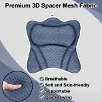 Our Luxury Bath Pillow is not just a bath accessory; it’s a solution to enhance your bathing routine. It’s designed to offer the support you need to relax fully, providing therapeutic comfort for your head, neck, and back. The ergonomic design ensures that every area of your body receives the relief it deserves. Whether you're soaking away stress or indulging in a soothing bubble bath, this pillow guarantees your comfort throughout.The high-quality 4D mesh fabric makes this pillow stand out. It’s incredibly soft and dries quickly, ensuring you stay comfortable without the sogginess of traditional bath pillows. Plus, the fast-drying fabric prevents moisture from seeping into your hair, so you can enjoy a dry, refreshing bath experience.