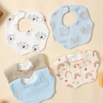 The 5pcs Set Muslin Cotton Baby Bibs and Burp Cloths are perfect for everyday use. Use them during feeding to protect your baby's clothes from spills and drool, or as burp cloths when helping your baby with their after-feed burps. The soft cotton is also gentle enough to be used for quick wipes after mealtime messes. Whether you're at home or on the go, these bibs and burp cloths will keep your baby clean and comfortable throughout the day.