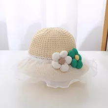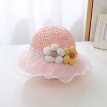 Protect your little one from the sun in style with the Cute Floral Baby Straw Hat. This adorable hat is perfect for keeping your toddler girl cool and shaded on sunny days. Made from a breathable combination of polyester and straw, it ensures your baby stays comfortable while providing excellent protection from harmful UV rays. The cute floral design with lace ruffle detailing adds a touch of charm, making it the perfect accessory for outdoor adventures.