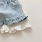 - Ruffle Design: The charming ruffled hem adds a fun, feminine touch to the classic denim style.