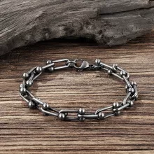 Use our battle tested marketing materials for Gothic U-Shaped Splice Chain Bracelet – Retro Black Stainless Steel Jewelry