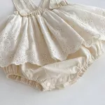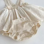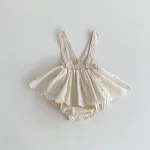 - Charming Ruffle and Lace Design: The ruffled edges and lace suspender details add a sweet, feminine touch to your baby’s outfit.