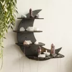 What sets this floating moon shelf apart is its unique, ethereal design that mirrors the shape of a crescent moon. Its rustic wood finish and natural materials bring warmth and charm to any space. The floating design allows the shelf to seamlessly blend into your wall decor while adding a touch of whimsical elegance. It’s not only a functional piece but also a stunning work of art that enhances the overall aesthetic of your room.Product Benefits: