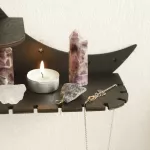 This 4-Tier Floating Moon Wall Shelf is perfect for use in a variety of settings. Ideal for creating a calming atmosphere in your living room, hallway, study, or bedroom, it’s an excellent way to display your crystals, aromatherapy essentials, and other cherished items. The open design makes it perfect for showcasing your unique collection of treasures, while also offering a convenient and beautiful way to organize small accessories.What makes this product special?