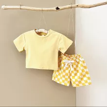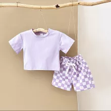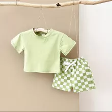 This Summer Baby Boys 2-Piece T-shirt and Plaid Shorts Set is the perfect choice to keep your little one comfortable and stylish this season. Crafted with soft cotton and polyester, this outfit is designed with the comfort of your child in mind, ensuring they look great while feeling great. Whether it's a family outing or a day at the park, this set will make sure your toddler stays cool and adorable all day long.