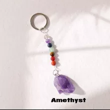 - Design: Each keychain features a raw Amethyst stone with natural facets and edges, providing a rustic yet stylish appearance.