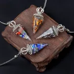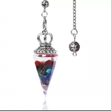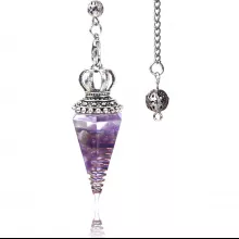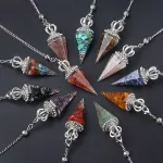 Unlock the power of energy healing with the Energy Healing Chakra Orgone Pendulum. Crafted from semi-precious stones and set in durable zinc alloy, this beautifully designed pendulum is perfect for dowsing, divination, and meditation. Whether you're looking to balance your chakras, tap into spiritual energy, or enhance your yoga practice, this pendulum will help you achieve greater focus, clarity, and connection to the universe. The pointed natural chips crystal stone pendant, set in a geometric circle design, makes this a stunning tool for both spiritual growth and personal style.
