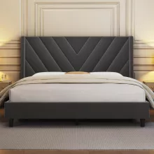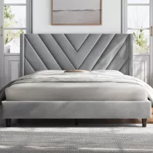 Use our battle tested marketing materials for Modern Velvet Upholstered Queen Platform Bed with Wingback Headboard