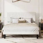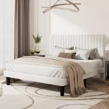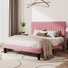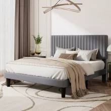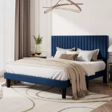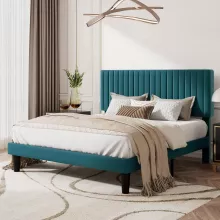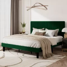 - Sophisticated Design: The plush velvet upholstery and vertical channel tufted headboard add an element of luxury and sophistication to your bedroom. The rich texture of the fabric is not only visually appealing but also offers a comfortable backrest for lounging or reading.