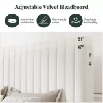 Whether you're updating your bedroom with a fresh, modern look or searching for a practical solution to maximize space, this bed frame is the perfect choice. The adjustable headboard and comfortable velvet upholstery make it a functional and stylish centerpiece for any bedroom. Its sturdy construction ensures durability and support, while the under-bed storage space offers an extra level of convenience for keeping your room organized. Plus, with no need for a box spring, the platform design allows for a cleaner, more streamlined look.