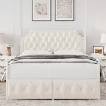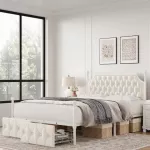 - Hidden Storage Drawers: Maximize your bedroom’s storage with two large hidden drawers on wheels. Perfect for storing blankets, pillows, or other essentials, these drawers help you keep your space organized and tidy.