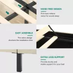 - Sturdy and Stylish Construction – Built with a durable wooden frame and equipped with scratch-resistant foot pads, this bed frame ensures long-lasting stability and protection for your floors. The EVA silent rods create a peaceful, noise-free sleep environment.