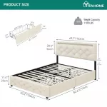 - Adjustable Headboard for Comfort – Whether you're sitting up to read or lying back to relax, the adjustable headboard, made from soft and breathable velvet fabric, offers optimal support. You can adjust its height from 40 to 44 inches to suit your preferred mattress thickness and comfort level.
