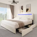- Vibrant RGB LED Lighting – Set the mood in your bedroom with customizable multi-color lighting. With a simple remote control, you can adjust the brightness, explore different color options, and choose from various lighting modes to create the ideal ambiance for relaxation, reading, or sleep.