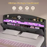 - Storage Headboard: The spacious headboard features both open and hidden storage, perfect for keeping your essentials organized. Store books, magazines, or nighttime essentials in the convenient shelving unit, and enjoy easy access while you unwind.