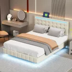 - Unique Floating Design: The innovative floating design gives the bed a dreamy, weightless look. With hidden footings and integrated LED lights, this bed creates an eye-catching effect that transforms your room into a contemporary sanctuary.
