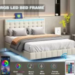 - LED Lights with Remote Control: The bed frame comes equipped with LED lights that are fully customizable through a remote control or mobile app. Choose from multiple colors and light modes, including a Music Sync mode, which makes the lights flash to the beat of your favorite tunes for an immersive experience.