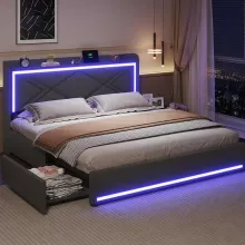Use our battle tested marketing materials for Queen Bed Frame with RGB LED Lights, USB Charging, and Storage Drawers
