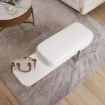 - Modern Elegance: Featuring a sleek, contemporary design, this bench is ideal for modern living spaces. The abstract metal legs provide an eye-catching geometric element, while the clean white wooden seat complements any decor, offering timeless appeal.