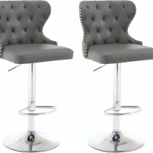 adjustable velvet swivel bar stools offers the perfect combination of comfort, functionality, and elegant design. With a high back for added support, plush velvet upholstery, and silver nailhead detailing, these stools are sure to be the standout feature in any room.