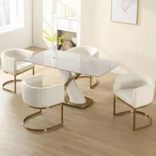 Upgrade your dining room or living space today with these contemporary velvet dining chairs. Their stylish design and unmatched comfort are sure to impress. Don't wait—add a touch of luxury and elegance to your home with this stunning chair set.