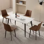 These brown faux leather dining chairs are the perfect combination of style and comfort. Whether you’re hosting dinner parties, enjoying a family meal, or simply relaxing with friends, these chairs will provide the perfect seating solution. The cushioned seats and backrests ensure that you and your guests can sit comfortably for extended periods of time, while the modern design enhances the overall ambiance of your home. Their easy-to-clean faux leather finish makes them both practical and chic, while the sturdy metal legs provide a solid foundation for everyday use.