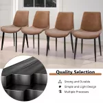 Upgrade your dining space with the sophisticated charm of this set of 4 modern brown faux leather chairs. Designed with sleek lines and a minimalist aesthetic, these chairs not only add style to your dining room, but also offer exceptional comfort for everyday meals or special gatherings. Featuring plush PU cushioned seats and sturdy metal legs, this set combines modern design with durable construction for a perfect balance of elegance and functionality. Whether for your kitchen, dining room, or living area, these chairs are versatile and stylish additions to any space.