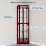 - Ample Display Space: With 6 adjustable triangular corner shelves and two side-hung glass pane doors, this display cabinet offers plenty of room for your favorite items. The included light enhances your display, providing an ambient glow that brings attention to the items you want to showcase.