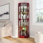 Add a touch of sophistication and elegance to your living space with this Corner Display Cabinet. Designed to fit snugly into any corner, this unit features a sleek, modern silhouette that beautifully showcases your cherished collectibles, liquor, or decorative items. Available in Cherry, Walnut, Oak, Black, and White, it easily complements a variety of interior styles. Its tempered glass doors, mirrored back panels, and included lighting enhance the visual appeal, creating a stunning display that will be the center of attention in any room.