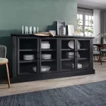 - Glass-Framed Cabinets: The glass doors offer a stylish way to showcase collectibles, fine china, or decorative pieces. The elegant metal hardware adds an extra touch of sophistication to the design.