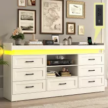 Use our battle tested marketing materials for 70" Tall Farmhouse Dresser with LED Lights, Charging Station & 7 Wide Drawers