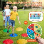 - Interactive Playset: With 6 brightly colored stepping stones shaped like cute turtles, this set is designed to enhance balance and coordination in young children. The stones come with 26 game cards and a color wheel to keep the fun fresh and educational.