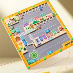 This activity game challenges children to match uppercase letters with the parking spaces marked with lowercase letters. As they move their toy vehicles along the maze, they build both letter skills and hand-eye coordination in a way that feels like a fun adventure. Ideal for toddlers who are starting to learn the alphabet, this puzzle keeps them entertained while developing key learning and sensory skills.