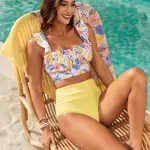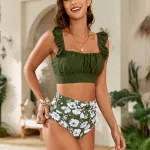 The perfect combination of comfort, style, and sensuality, this swimsuit promises to turn heads at the beach or poolside. With a flattering high waist and ruffled details, it provides a chic, feminine look that’s both trendy and timeless. Whether you’re soaking up the sun or enjoying a beachside getaway, this swimsuit is your go-to for effortless elegance and confidence.Product Features
