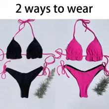 Use our battle tested marketing materials for Sexy Ruched Bandeau Bikini Set – Double-Sided Low Waist Thong Swimwear