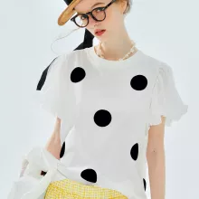 Use our battle tested marketing materials for Summer Polka Dot Mesh Puff Sleeve Cotton Tee for Women