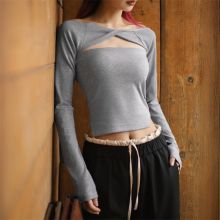 Use our battle tested marketing materials for Off-Shoulder Hollow Out Long Sleeve Crop Top for Women