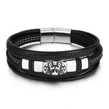 Use our battle tested marketing materials for Trendy Genuine Leather Bracelet with Lion Head Design for Men - Stainless Steel Wristband