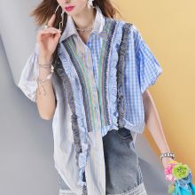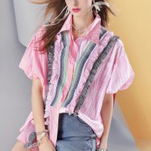 Use our battle tested marketing materials for Women's Striped Patchwork Puff Sleeve Blouse
