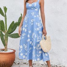Use our battle tested marketing materials for Women's Sleeveless V-Neck Print Midi Dress