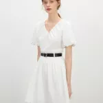 Step into summer with grace and ease in this minimalist white puff sleeve dress, designed for women who love effortless charm and subtle sophistication. Crafted with a clean silhouette and tailored to flatter, this short A-line dress is a timeless wardrobe staple that transitions seamlessly from casual outings to more polished occasions.