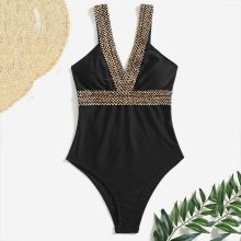 Use our battle tested marketing materials for Women's V-Neck One-Piece Swimsuit with Wave Print & Backless Design