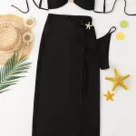 Crafted from soft, stretchable polyester, this set moves with you and keeps its shape wear after wear. The solid black color is classic and chic, while the starfish detail adds a hint of shimmer and personality. This set is best used during beach holidays, resort stays, poolside lounging, or any summer event where you want to feel feminine and fabulous.