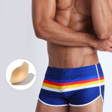 Use our battle tested marketing materials for Men's Sexy Rainbow Stripe Swim Trunks