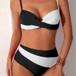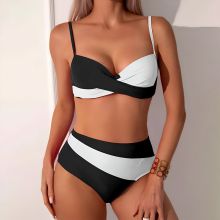 This bikini set isn't just about looks – it's about how you feel when you wear it. Whether you’re lounging by the beach or splashing in the waves, this swimwear brings out your bold side while keeping you secure and stylish. Its colorblock pattern is both playful and chic, perfect for turning heads and capturing summer memories.Don't settle for ordinary. Own your style and feel your best in this must-have bikini set. Your next favorite swimsuit is just one click away.