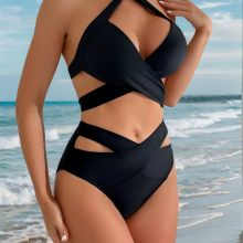 Use our battle tested marketing materials for Sexy Black Halter Cross High Waist Bikini Set – Hollow Out Two Piece Swimsuit