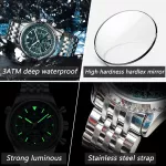 - Chronograph Function: The multi-functional chronograph gives you accurate timekeeping for sporting events or daily tracking, while the luminous hands and markers ensure readability in low light conditions.