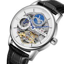 Turn heads with every flick of your wrist with this Luxury Skeleton Automatic Watch, built for men who value classic craftsmanship and cutting-edge detail. Featuring a sleek skeleton dial, moonphase display, and dual time zone functionality, this timepiece is more than a stylish accessory — it’s a daily reminder of your refined taste and attention to detail.